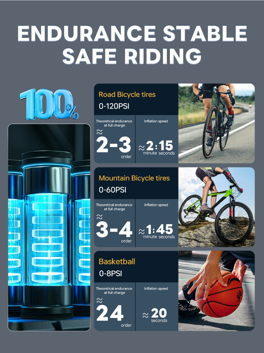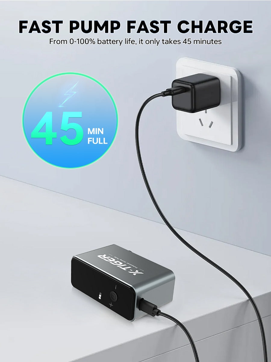X-TIGER 120PSI Mini Electric Pump for Bicycle Screen Display Lightweight Bike Air Pump 45-Min TYPE-C Charge 2-3 Tires Capacity