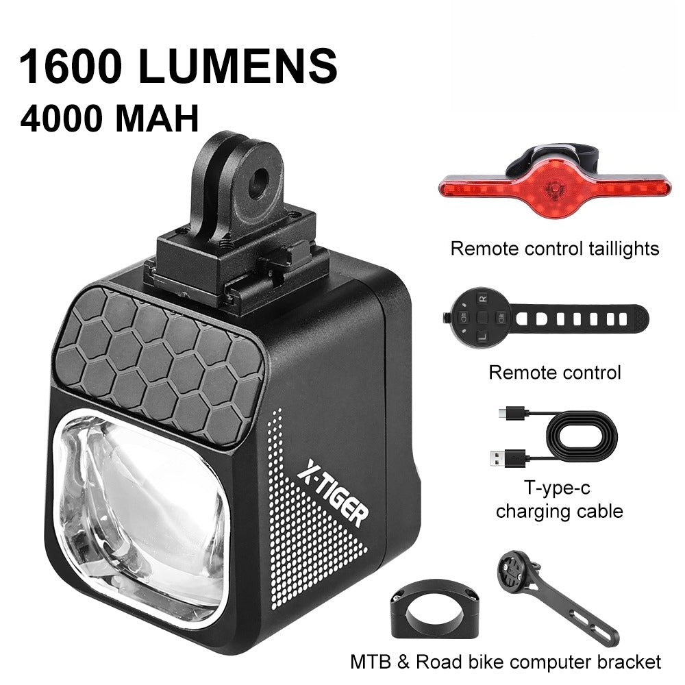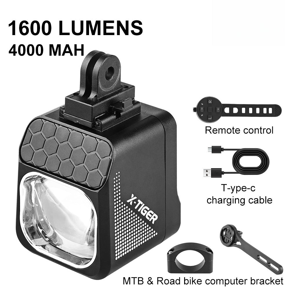 X-TIGER 1600 LM Bicycle Light High Low Beam Night Riding Headlight GoPro Hanging Wireless Remote Control MTB Road Bicycle Lights