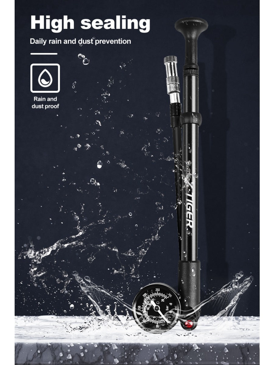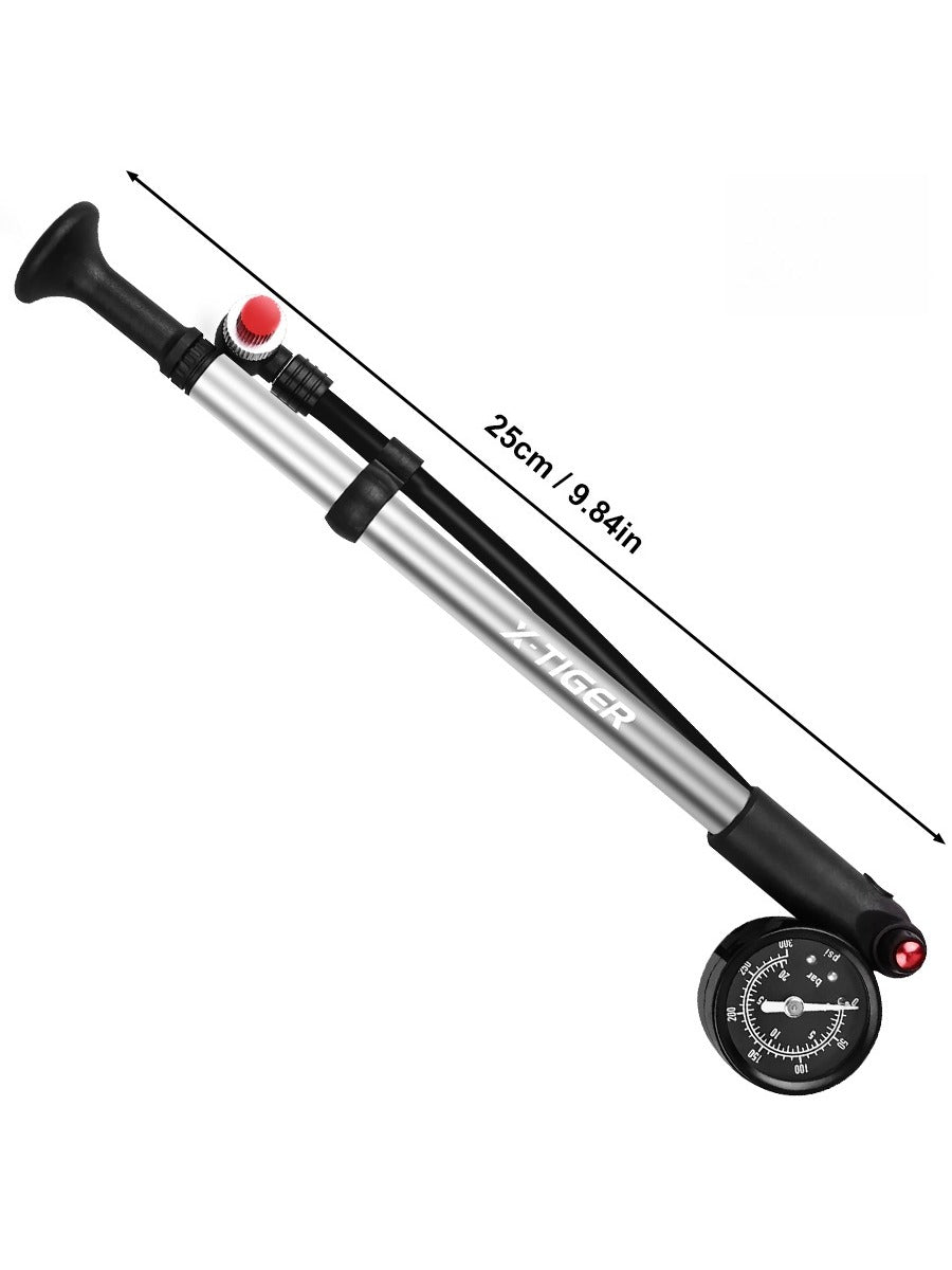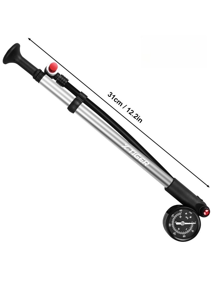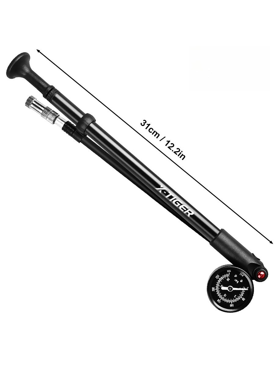 X-TIGER 25cm Shock Pump 300PSI Bicycle Manual Air Pump with Gauge for MTB Fork & Rear Suspension