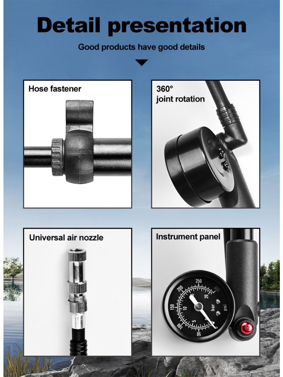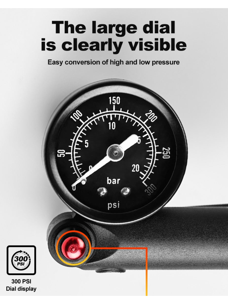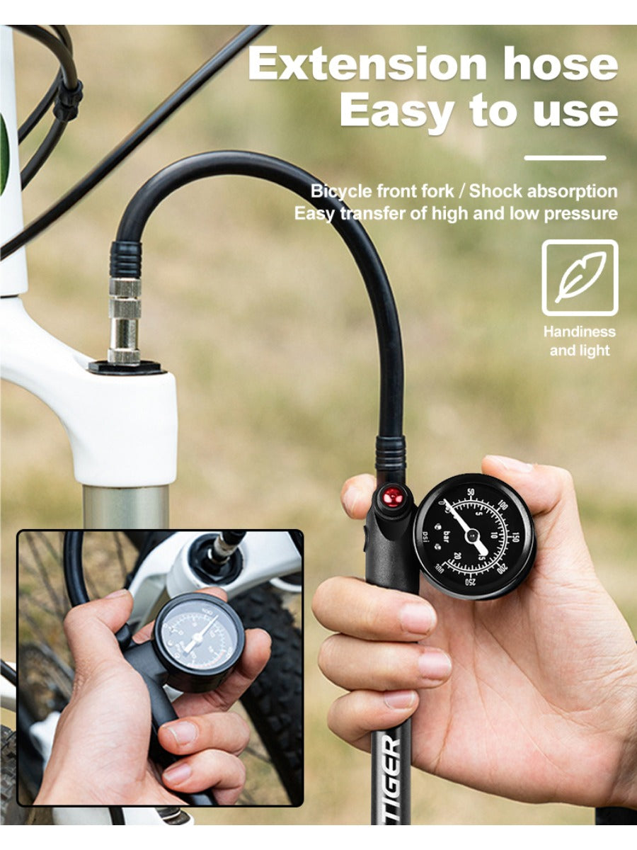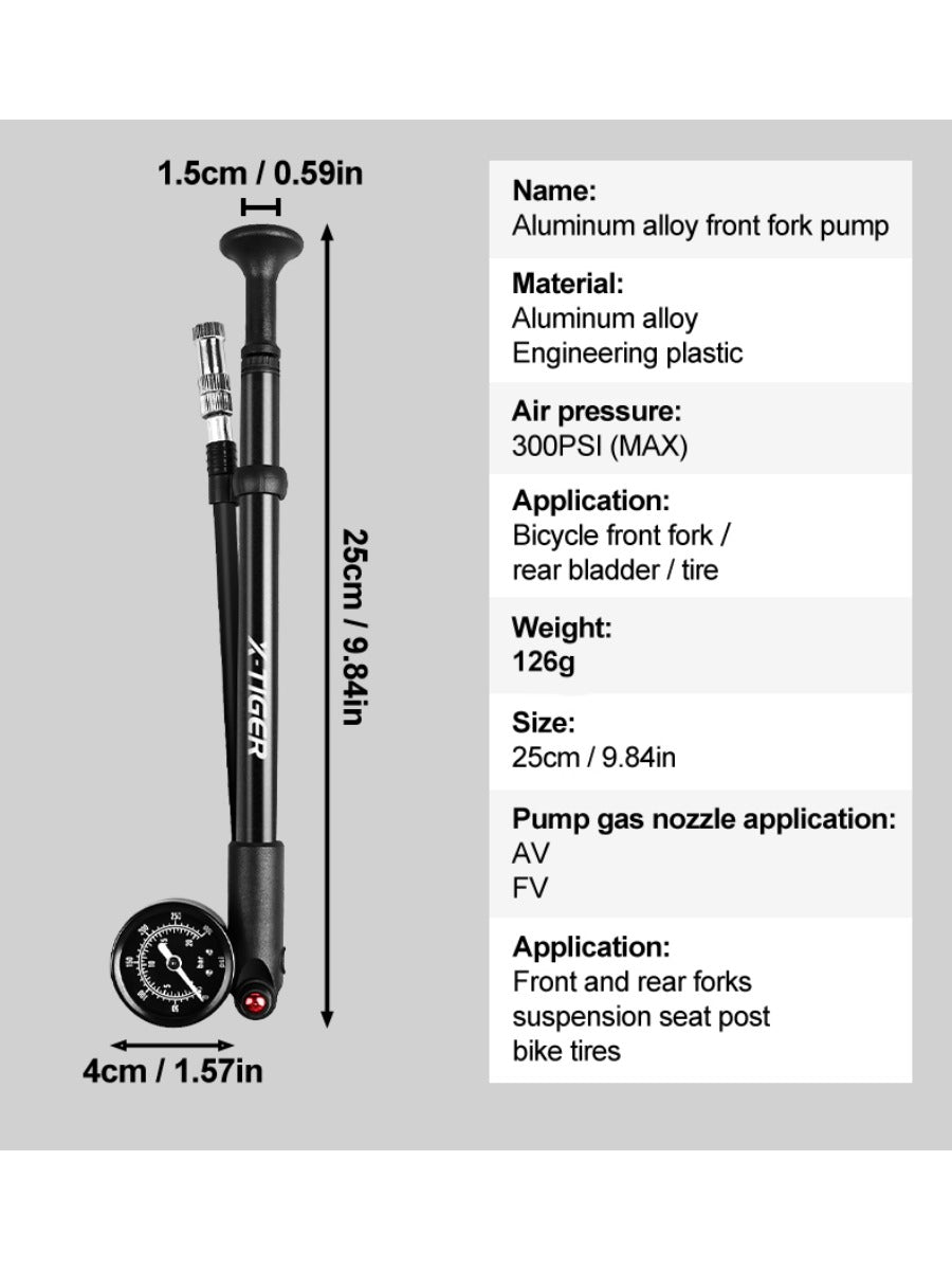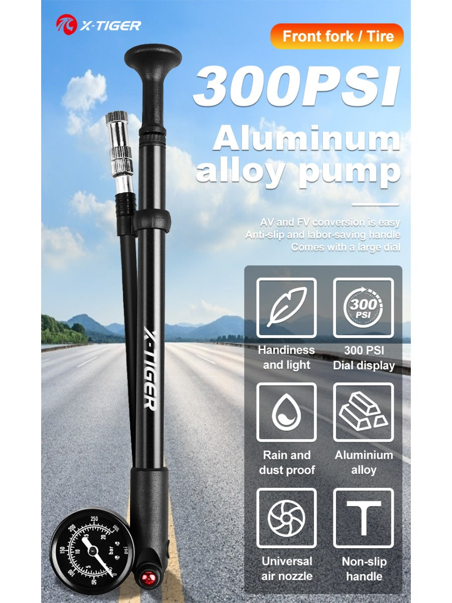 X-TIGER 25cm Shock Pump 300PSI Bicycle Manual Air Pump with Gauge for MTB Fork & Rear Suspension