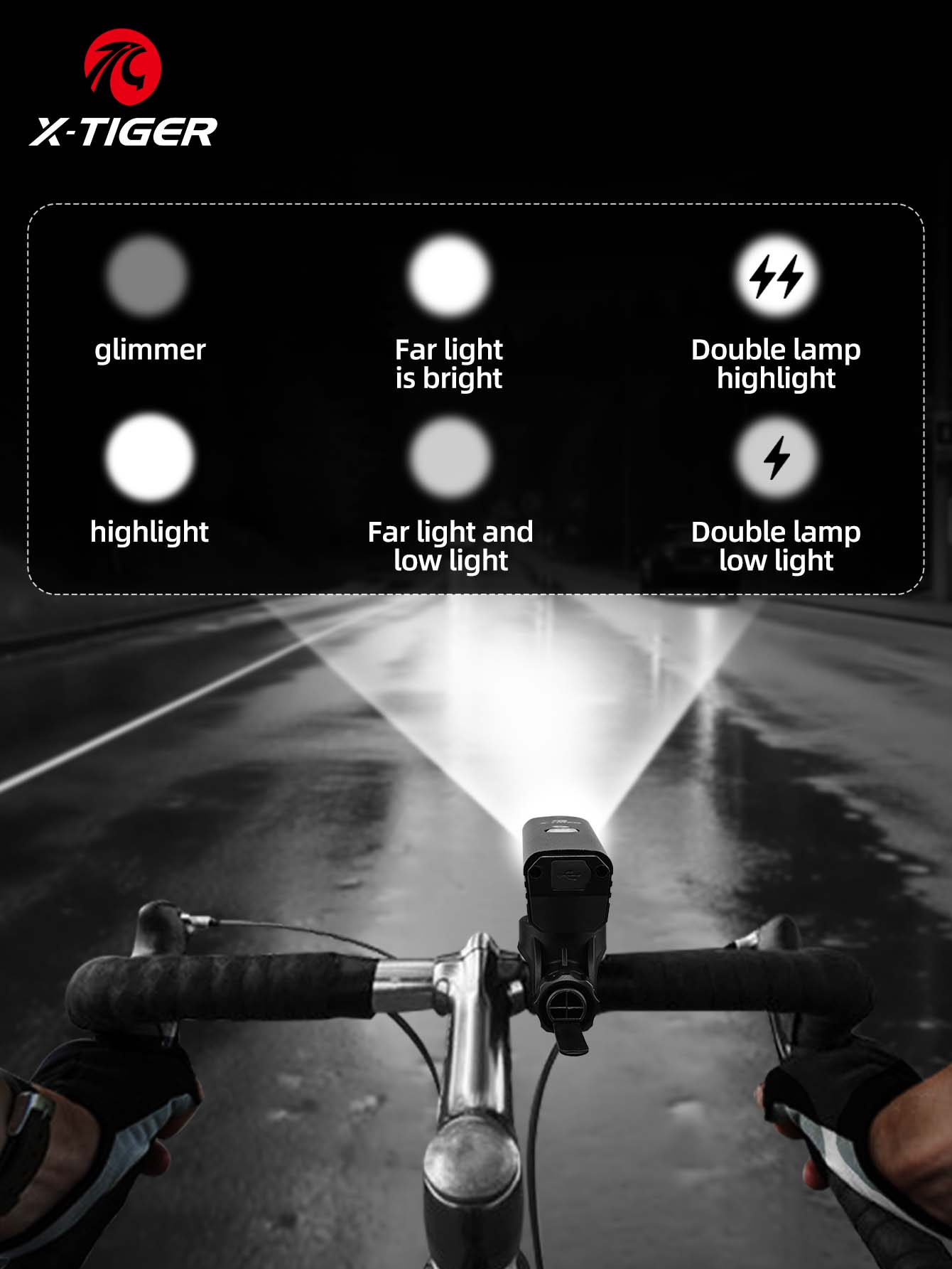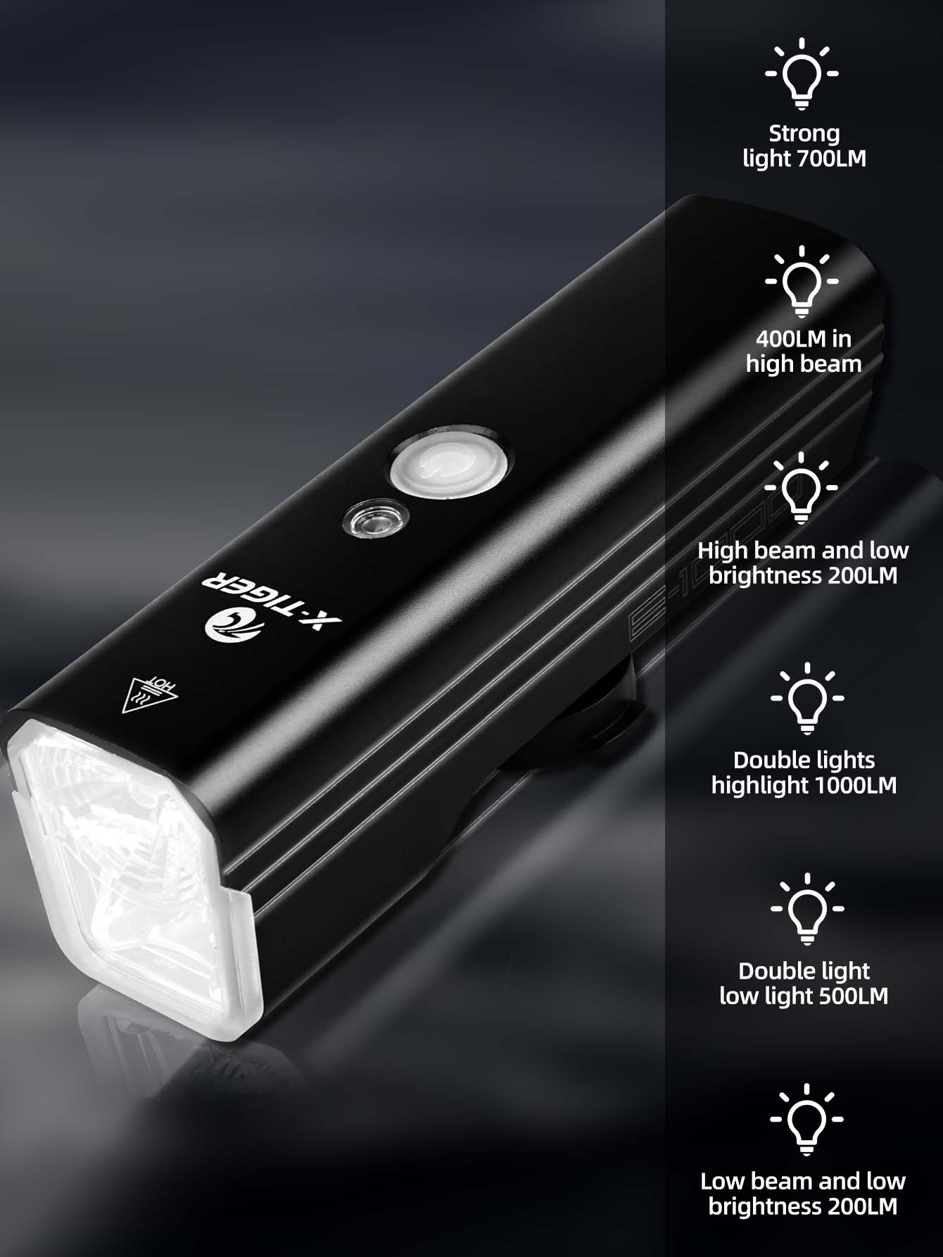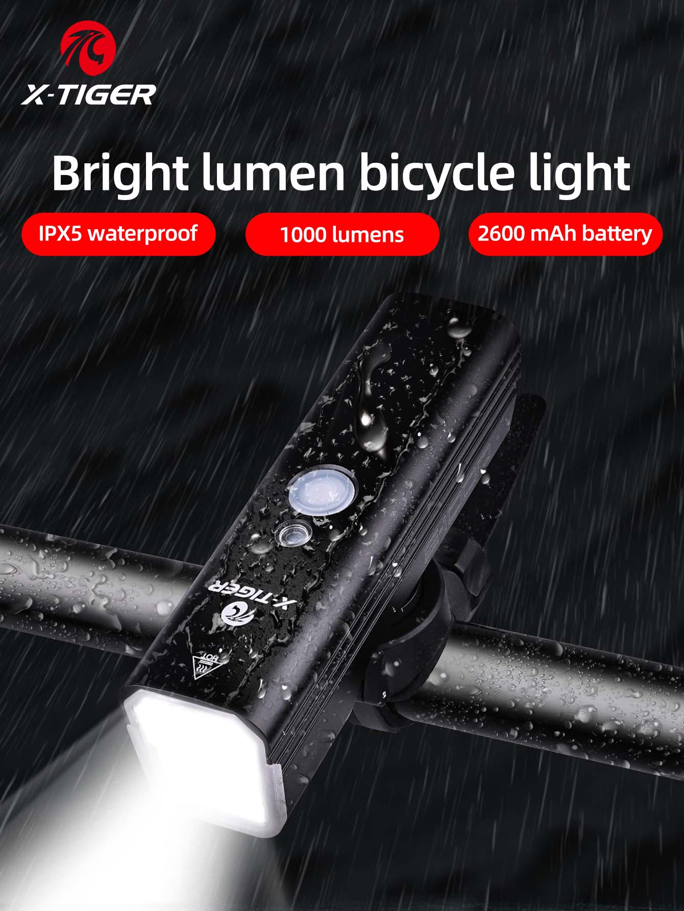 X-TIGER Bicycle Lights IPX5 Waterproof Aluminum Alloy 1000LM Bicycle Front Light Compact Portable Flashlight