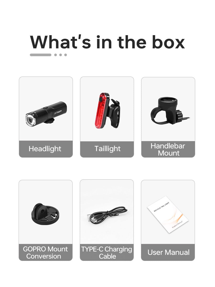 X-TIGER Bicycle Night Riding Lights Mountain Bike Road Bike Strong Light Headlight Brake Tail Light Combo Set Cycling Equipment