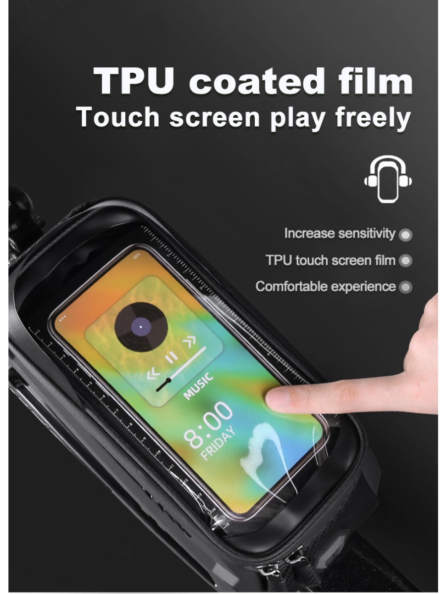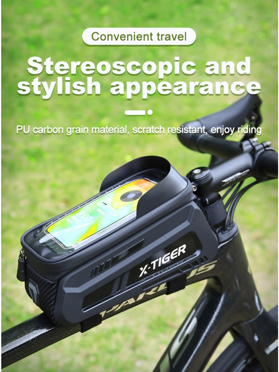 X-TIGER Bicycle Top Tube Bag Bike Phone Front Frame Bag TPU Screen Waterproof Bag for Cell Phone Under 6.7" iPhone 13,14,15 Pro