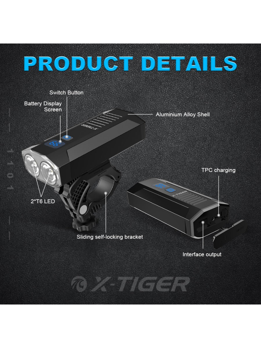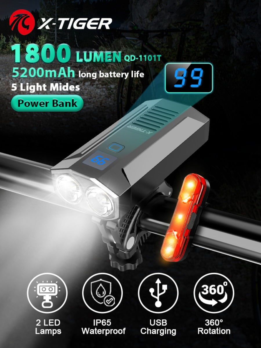 X-TIGER Bike Front Light Set Waterproof MTB Bicycle Lamp 5200mAh USB Rechargeable LED Bike Accessory Headlight Tail Light Set