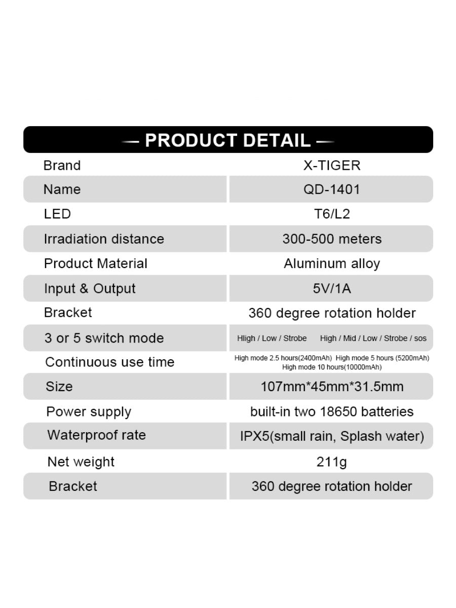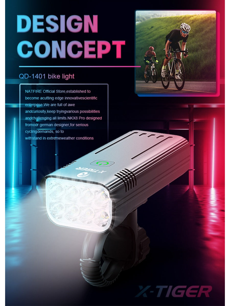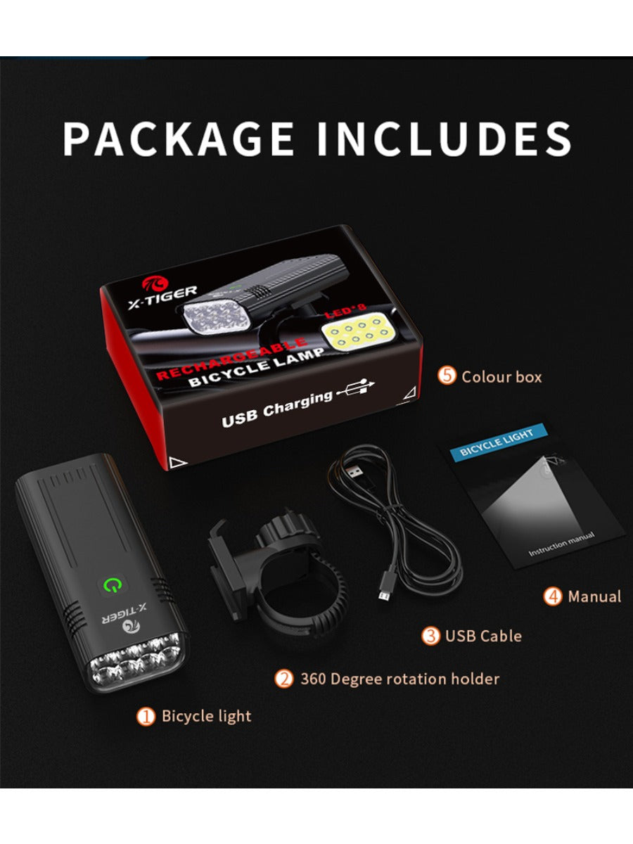 X-TIGER Bike Light Set Powerful USB Rechargeable Bright 10000mAh Bicycle Front Lights IPX5 Waterproof Front Lamp