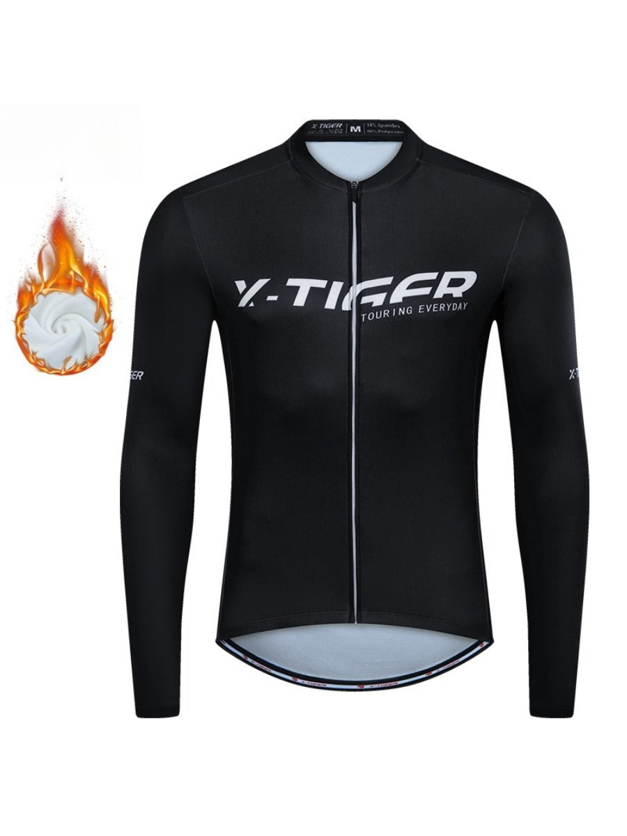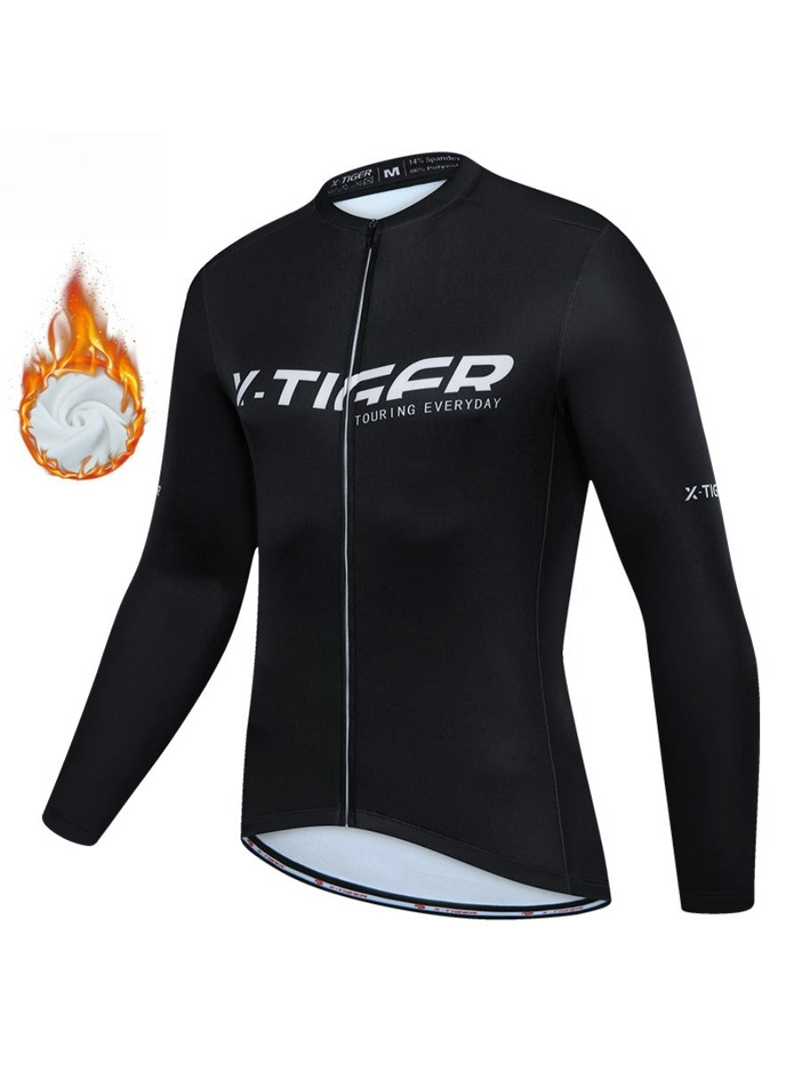 X-TIGER Men’s Pro Fleece Lycra Long Sleeve Cycling Jersey