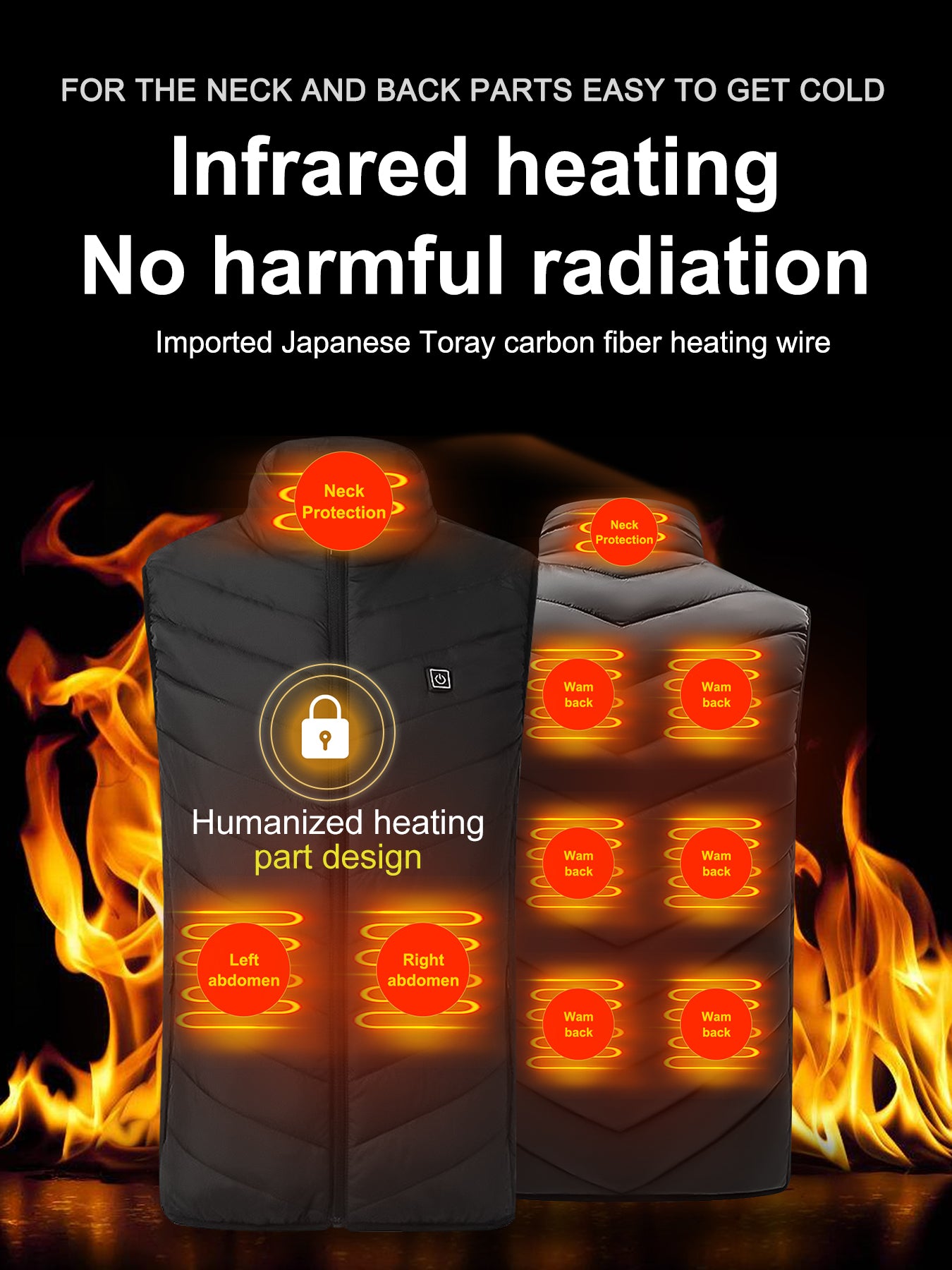 Humanized Heating Zones: Strategic heating elements target the body's most cold-sensitive areas: the neck and multiple points across the back and abdomen, ensuring core warmth