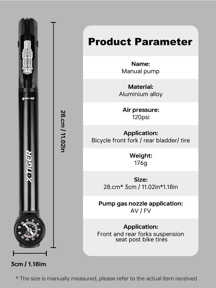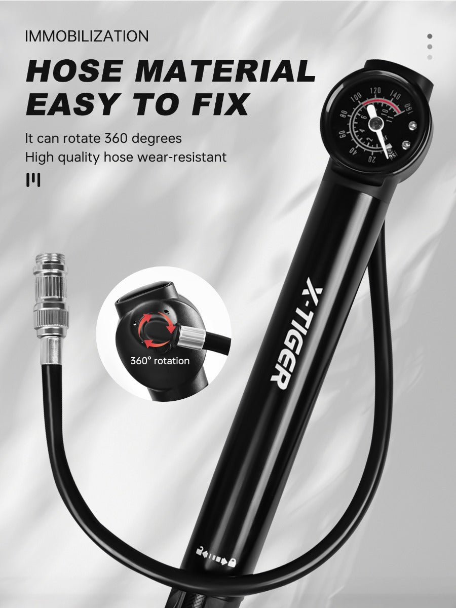 X-TIGER Multi-Functional Bike Inflator 120PSI Hand Pump with Gauge for AV/FV Valve & Sports Balls