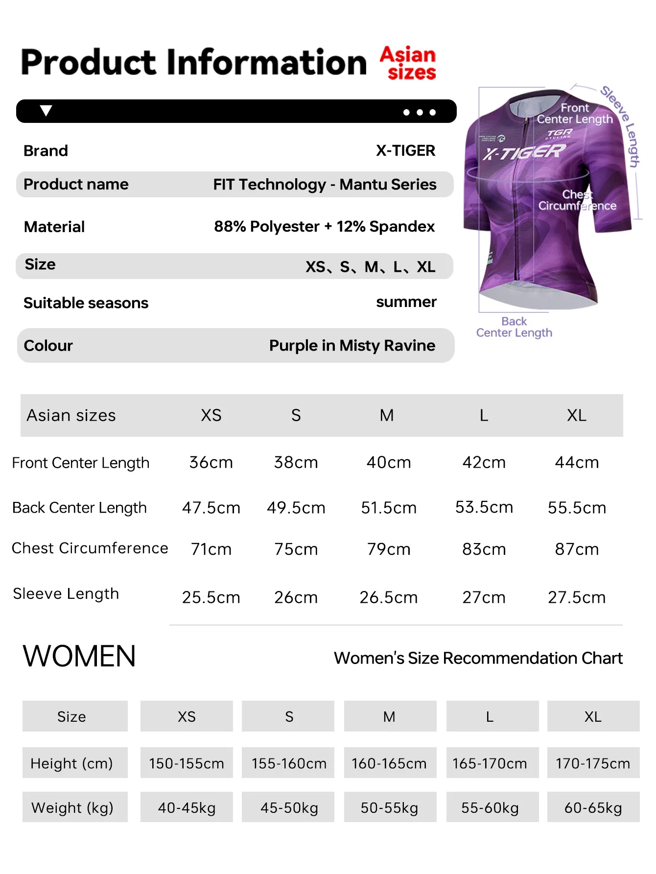 X-TIGER Women’s PRO Short Sleeve Cycling Jersey